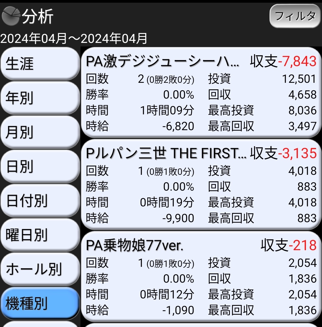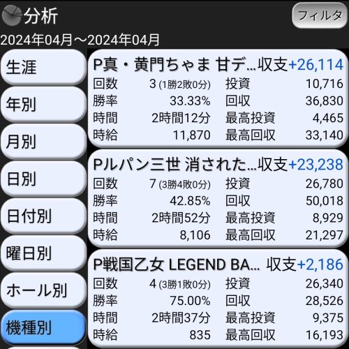 収支以外に、どんな台でどれくらい勝って負けたのかも紹介する。